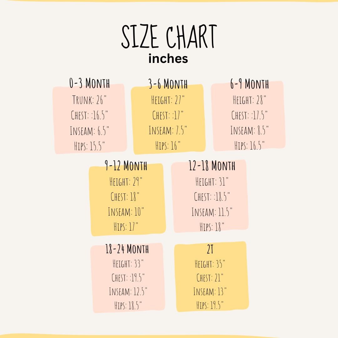 Sizes are approximate as every child grows at a different rate. If you are unsure which size to purchase please check the size chart photo of this listing. If you have questions please don't hesitate to reach out.