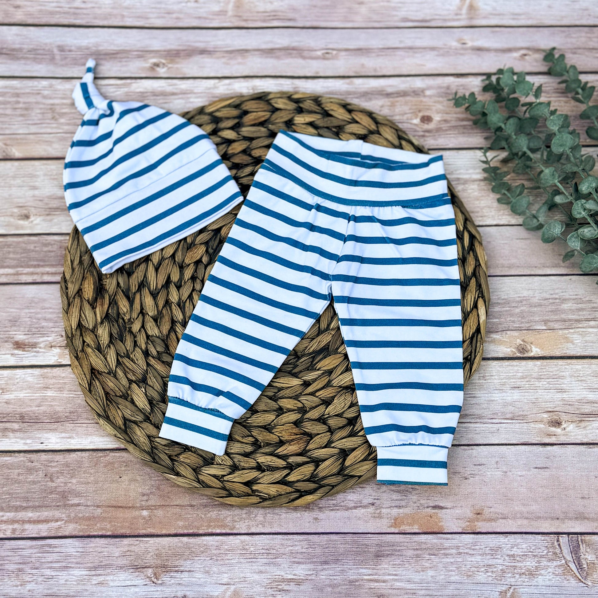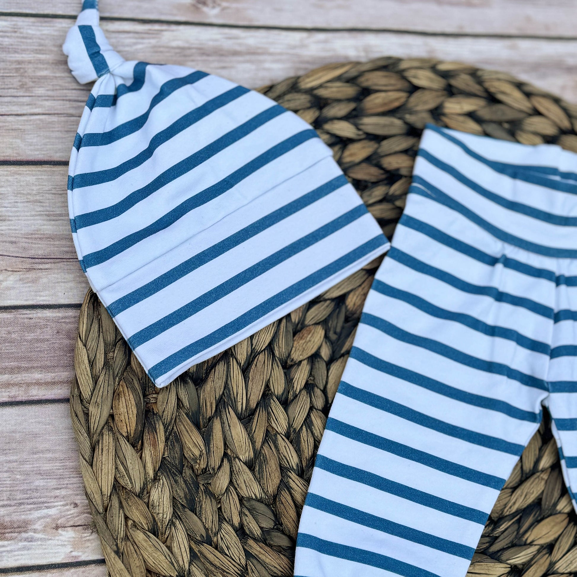 Teal Striped Baby Leggings Outfit: Cotton Spandex Newborn Set